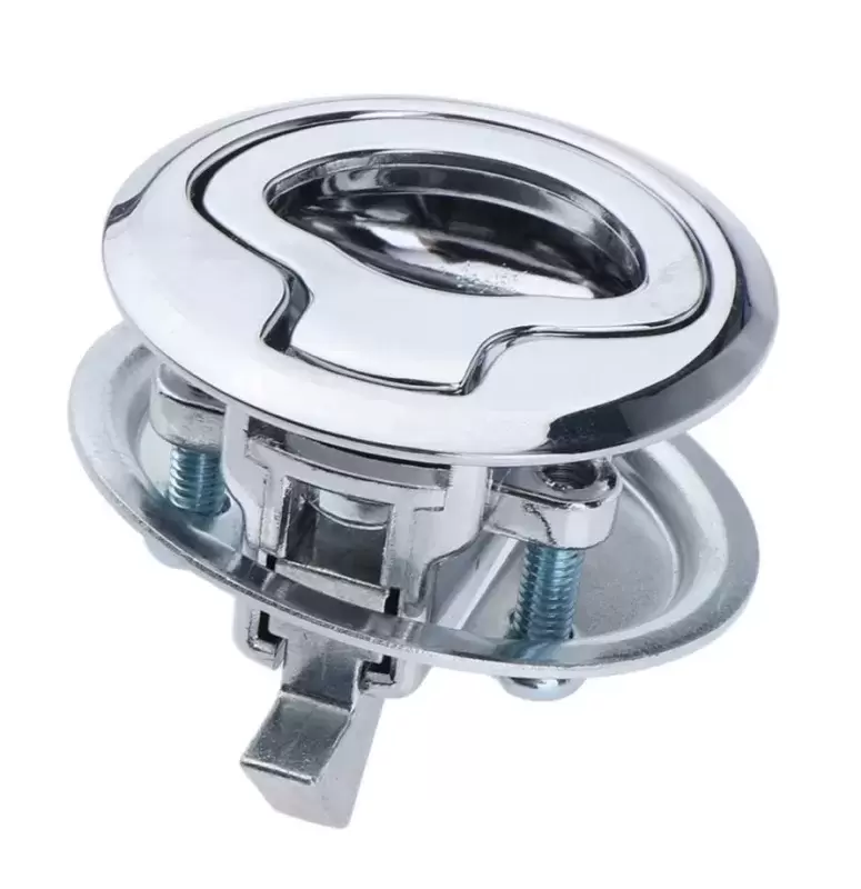 Fechadura metálica com puxador cromado integrado para armários e gavetas em caravanas, autocaravanas, autocaravanas e 4x4 overland.