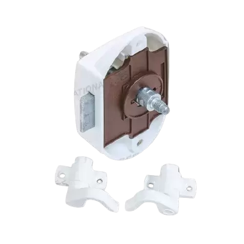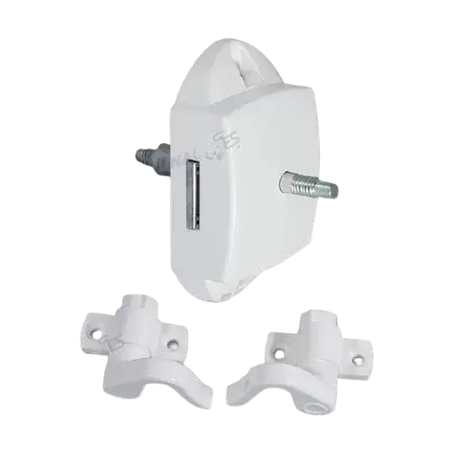 Fecho com botão de pressão e mecanismo com fecho inferior e superior em branco.