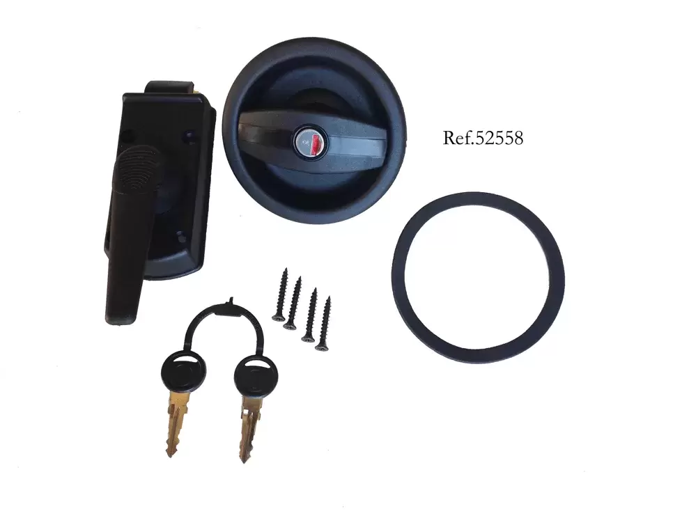 Fechadura redonda preta para baú ou porta de caravana ou autocaravana.