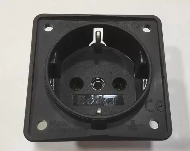 Ficha 220V linha BERKER cor PRETO ANTRACITO para caravanas, autocaravanas e autocaravanas. - Ref. 831431