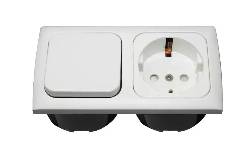 Ficha + interruptor interior com moldura BRANCA para caravanas, autocaravanas e autocaravanas.