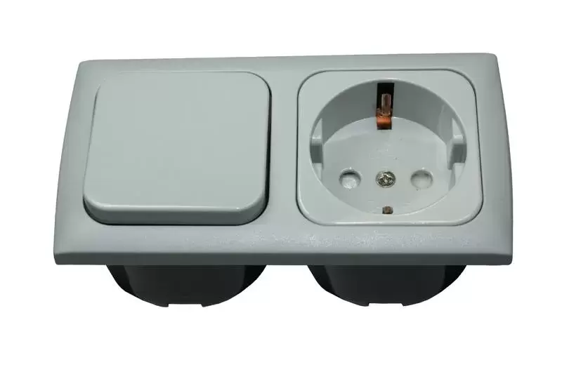 Ficha + interruptor interior com moldura CINZA CLARO para caravanas, autocaravanas e autocaravanas. - Ref. HA4102020H