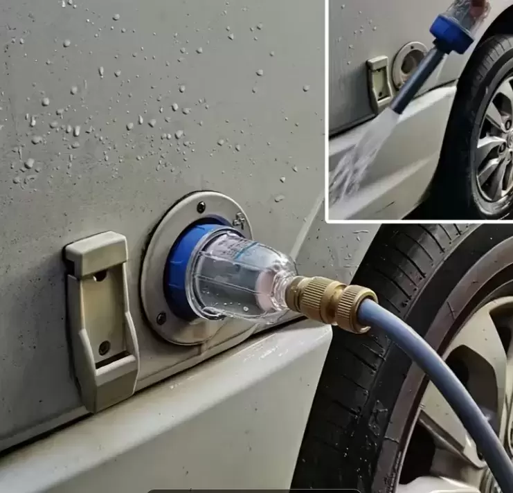 Filtro de água para abastecer reservatórios de água potável de caravanas, autocaravanas e caravanas.
