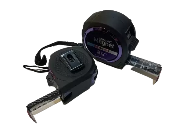 Fita métrica anti-corte com ponta de travamento magnético e freio.