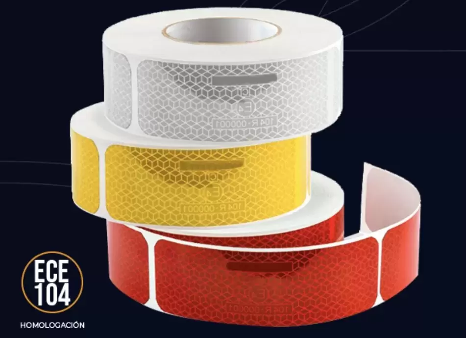 Para cumprir os regulamentos, qualquer fita reflexiva não é válida; a fita para marcação de caminhões deve ser aprovada de acordo com os regulamentos europeus: ECE 104.