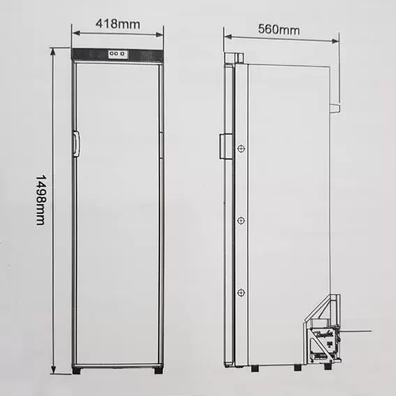 Dimensões profundidade incluindo porta (altura x largura x profundidade): 1498 x 418 x 560 mm.