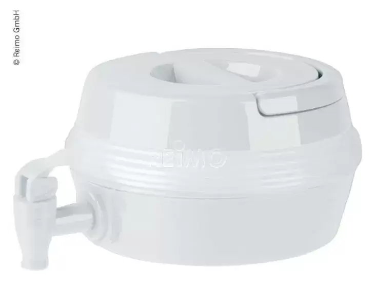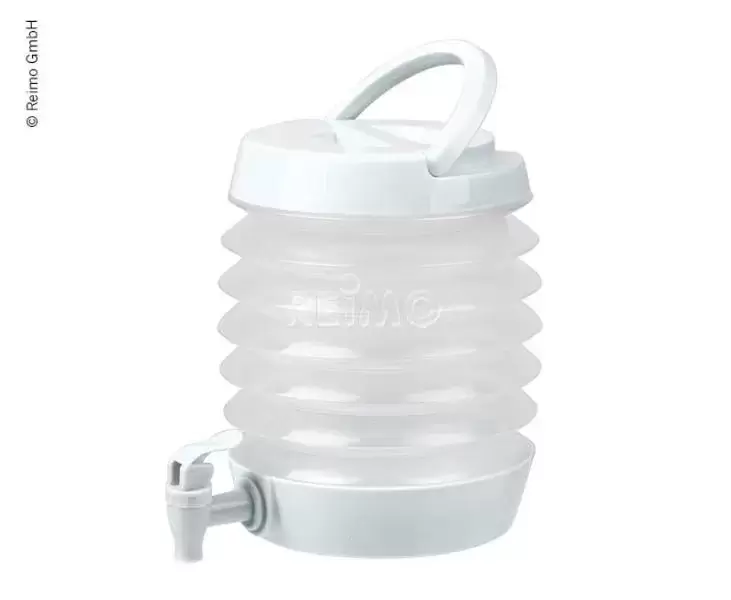 Garrafa dispensadora de água muito prática para as férias de campismo e em casa. Dobragem compacta. Com chave e alça de transporte