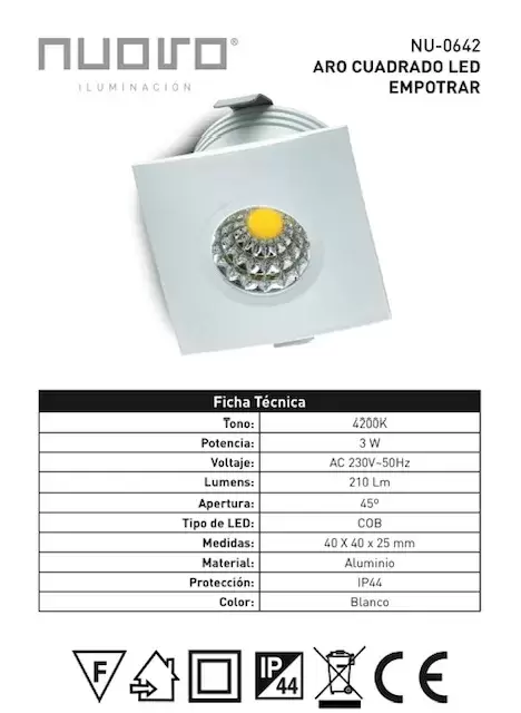 Holofote LED COB quadrado branco de 12 V para instalação embutida em caravanas, motorhomes e campers.