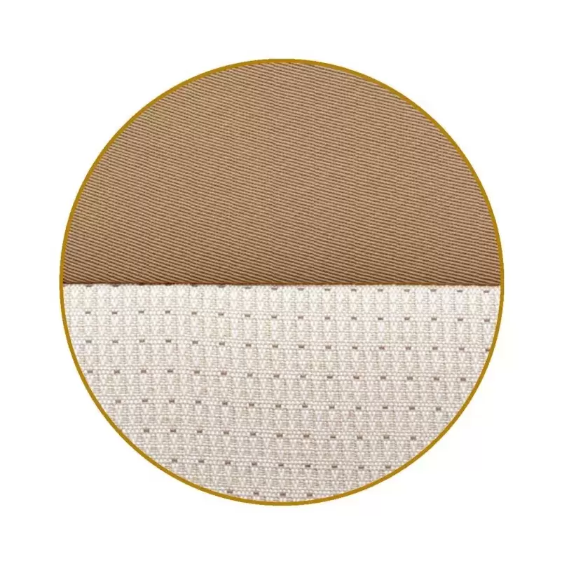 Parte central composta por um tecido robusto de algodão jacquard acoplado com material esponjoso de 6 mm.