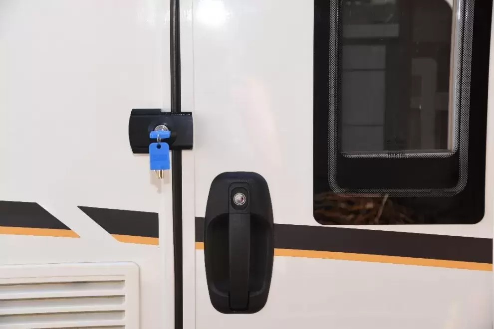 Composto por 2 fechaduras referência 1507 com abertura interior-exterior concebidas para instalação em autocaravana integral, uma delas na porta do habitáculo e outra na porta do condutor.