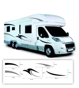 Kit de autocolantes para decoração de autocaravanas composto por 12 peças, 6 unidades para cada lado.