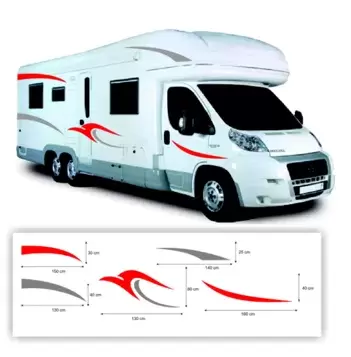 Kit de autocolantes para decoração de autocaravanas composto por 12 peças, 6 unidades para cada lado.