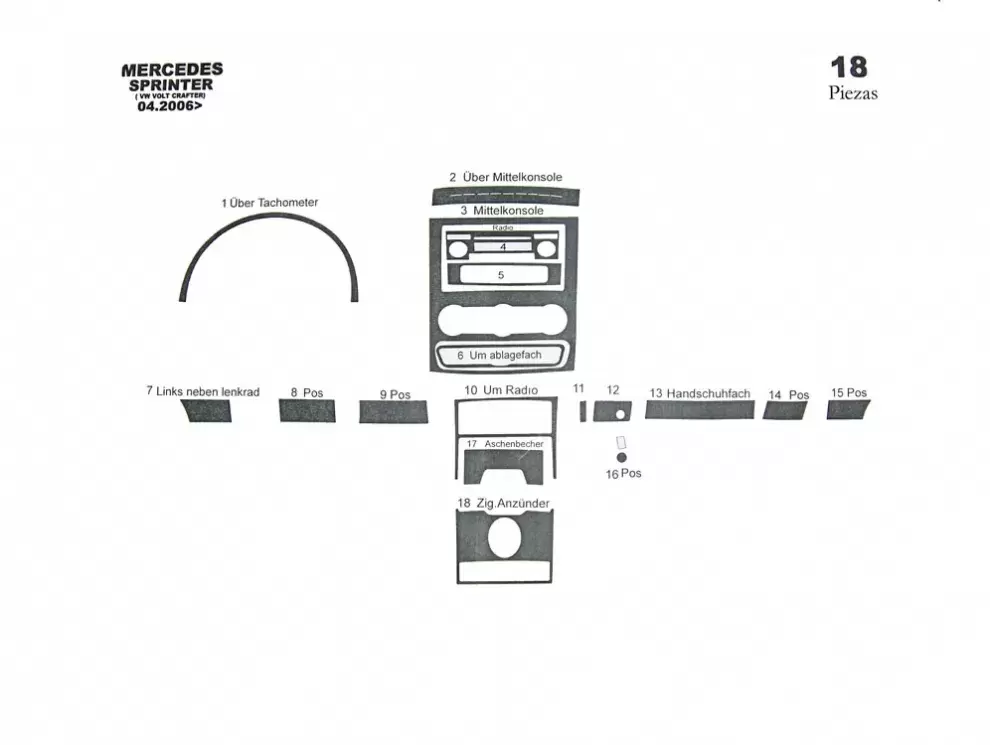 Kit decorativo efeito madeira 18 peças para Mercedes Sprinter e VW Crafter a partir de 2006.