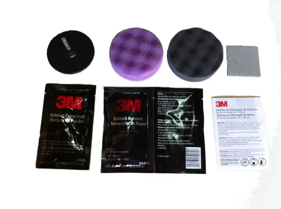 Tudo o que você precisa para remover arranhões, o kit contém composto abrasivo/polo de esmerilhamento para usar com uma broca padrão.