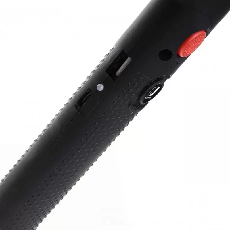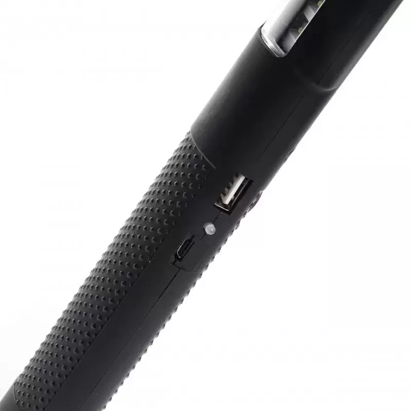 A lanterna está equipada com 18 diodos SMD com luz branca. É à prova d'água e vem com base de montagem, carregador de rede, carregador de carro e cabo USB.