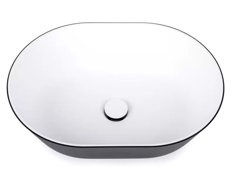 Lavatório de superfície oval branco/preto 354x260mm para caravanas, autocaravanas e autocaravanas. - Ref. 64061