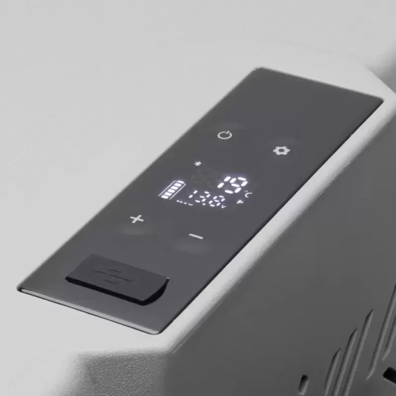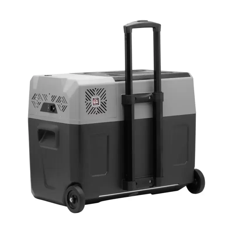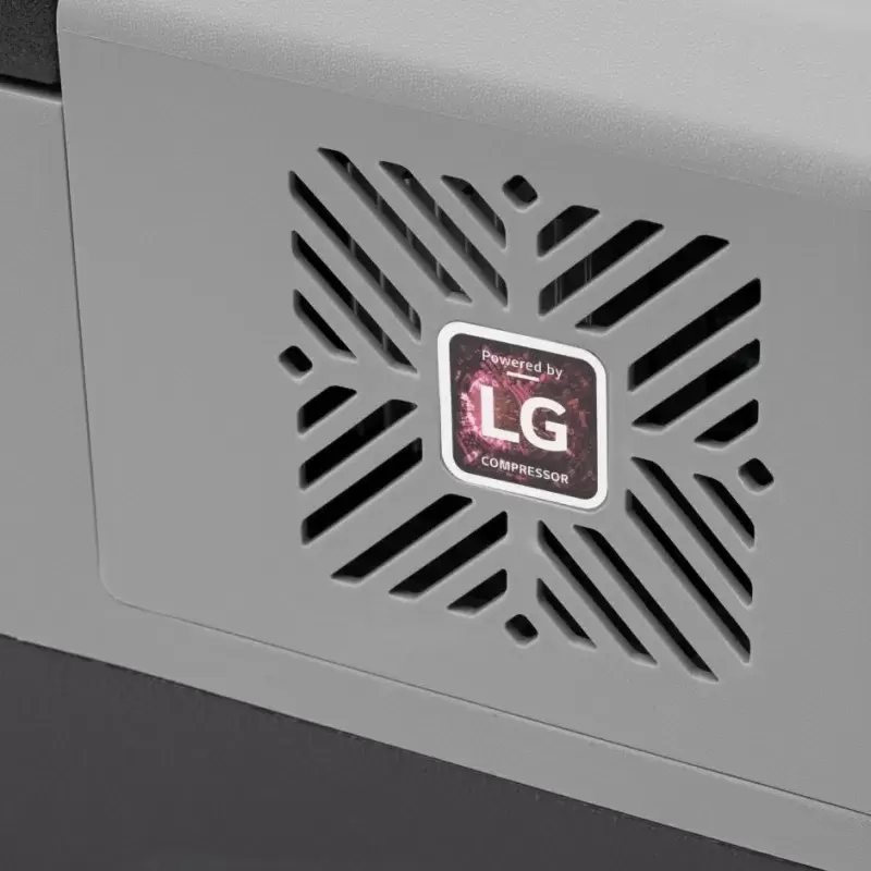 Geladeira portátil de 40 litros com compressor LG inverter, conectividade Bluetooth através do aplicativo para Android e iPhone. Inclui adaptador de isqueiro para o veículo como adaptador de 220V. Sua alça extensível e rodas integradas facilitam o transporte. Baixo consumo 45W e peso leve 13.700kg.
