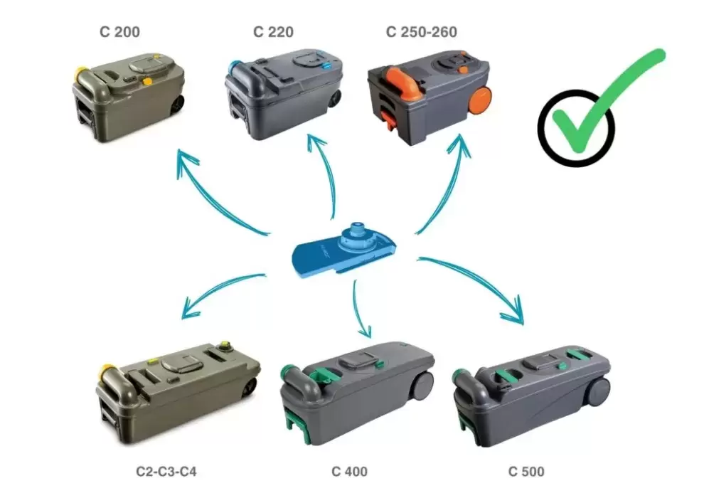 O DOC-WASH foi projetado para ser compatível com os principais modelos de vasos sanitários de cassete Thetford® usados em autocaravanas e caravanas.
