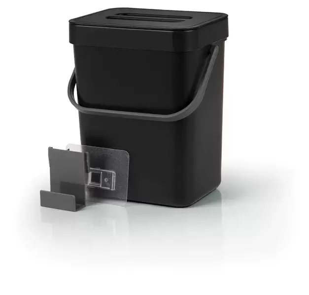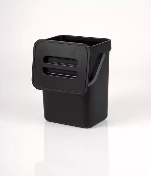 Lixeira, lixeira de 5 litros com alça e tampa preta, caravanismo de camping.