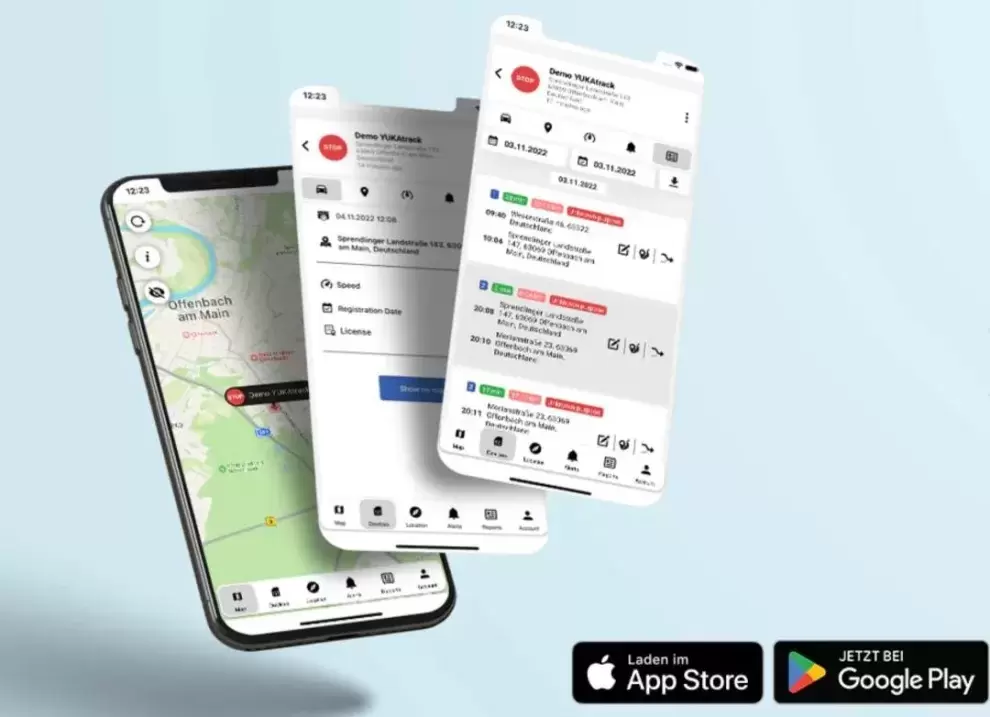 Os usuários se beneficiam do aplicativo YUKAtrack fácil de usar, que pode ser baixado gratuitamente na Apple App Store e na Google Play Store. Com acesso a dados GPS em tempo real e suas avaliações, você pode localizar um ou mais veículos a qualquer momento. Avalie, por exemplo, velocidades e infrações de área, ou verifique o relatório de trajeto para saber por onde o veículo esteve e onde foi utilizado nos últimos dias. O aplicativo YUKAtrack é um companheiro confiável para a localização do seu veículo, mesmo quando você não está no carro. Acompanhe suas rotas, motoristas e veículos de qualquer lugar.