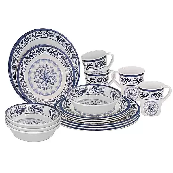 Um luxuoso e moderno jogo de jantar de 16 peças feito de 100% melamina.
