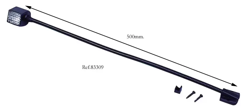 Luz de leitura HELLA com suporte para montagem fixa, braço de 500 mm, luz para ler e trabalhar onde for necessário. Grande eficiência luminosa através de uma lâmpada halógena embutida de 12v/6w. Iluminação intensa sem brilho, graças à lente especialmente configurada. Ligue a cabeça. Braço de metal flexível para um grande raio de ação.