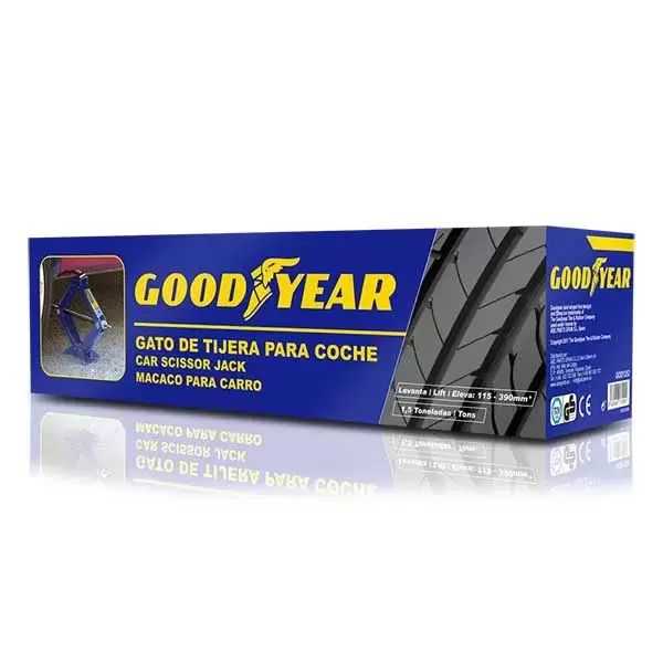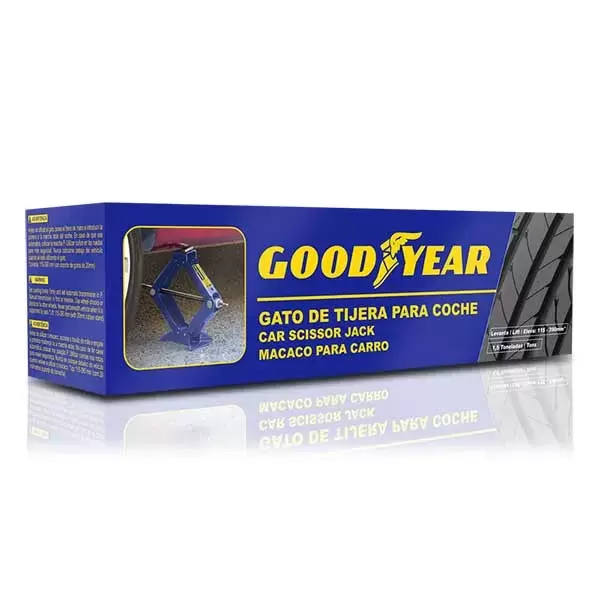 Macaco tesoura GoodYear 1,5 toneladas para caravana, autocaravana, autocaravana e 4x4 terrestre.