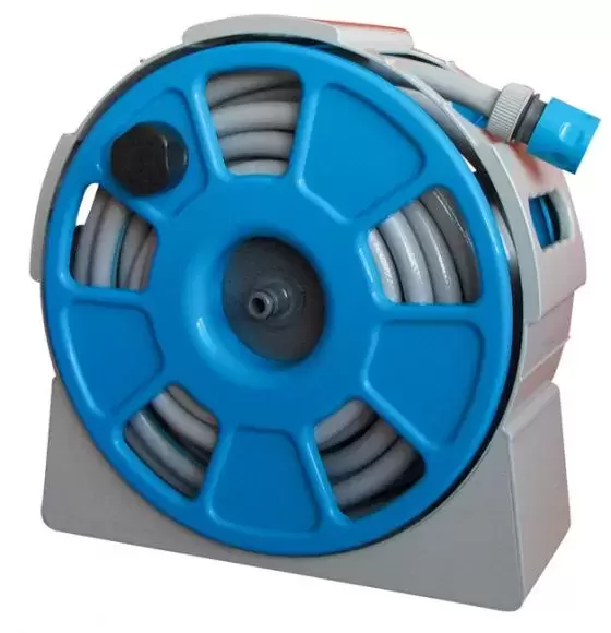 Mangueira redonda de 15 metros com suporte de parede, alça de transporte ergonômica que permite fácil manuseio. A guia do tubo localizada na frente, orienta o enrolamento e o desenrolamento para que seu uso seja fácil e sem nós. A conexão <> protege você contra respingos. permite que você troque os acessórios de irrigação sem precisar desligar a água. Os acessórios e adaptadores fornecidos permitem que o tubo de conexão seja adaptado ao comprimento desejado. estrutura resistente em ABS anti-UV.