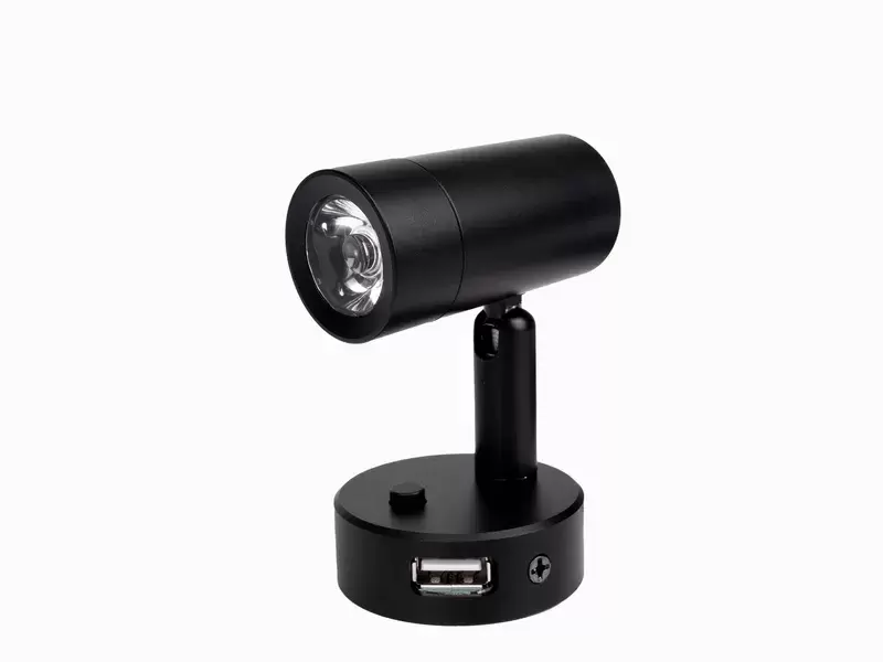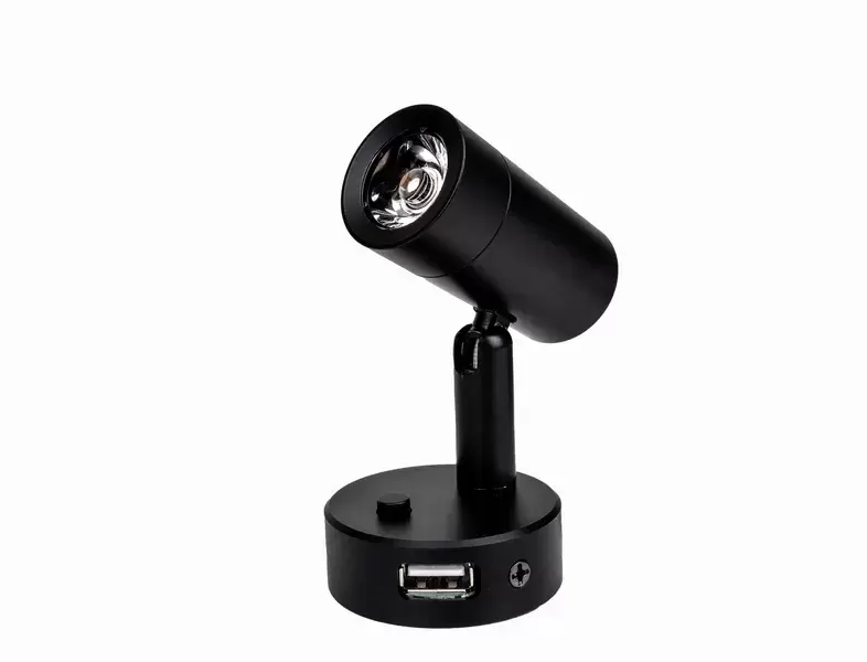 Mini candeeiro Led 12V interior Satin Black com tomada USB mais interruptor, caravanas, autocaravanas e autocaravanas. - Ref. 83611
