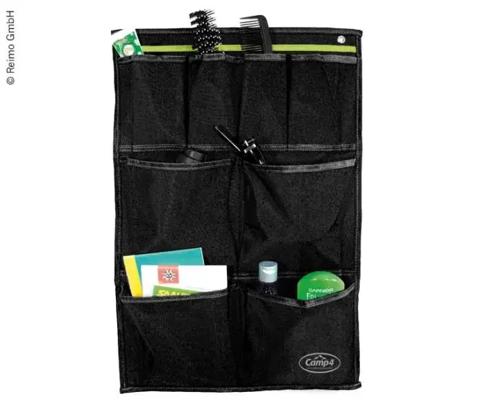 Com um total de 8 bolsos, 4 bolsos de 18x16cm e 4 de 10x16cm.