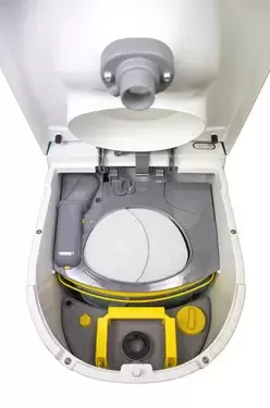 Higiénico e inodoro: Pode confiar nesta pequena sanita graças à sua elevada segurança de funcionamento e à sua instalação ser muito simples. O ligeiro odor que ocorre apesar da separação da urina é eliminado pelo ventilador e cria-se um melhor clima interior graças à constante circulação de ar. O ventilador funciona de forma silenciosa e eficiente. A máxima eficiência do ventilador é alcançada com o uso contínuo.