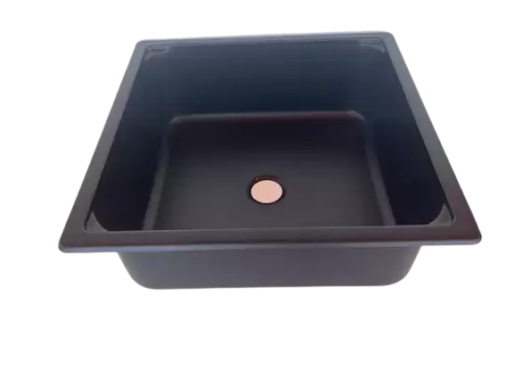 Pia quadrada preta 350x350x120mm para caravanas, autocaravanas e autocaravanas.