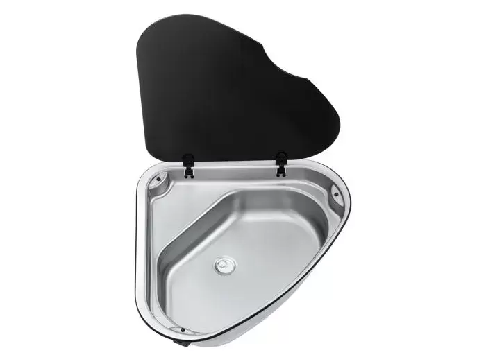 Pia Thetford Basic Line 33 L ESQUERDA com tampa de vidro temperado para caravanas, autocaravanas e autocaravanas.
