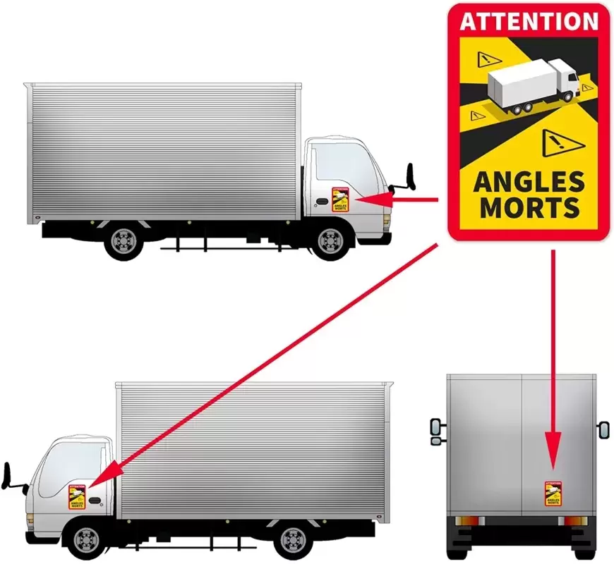 Placa de advertência "Angles Morts" "Blind Angles" ponto cego autoadesivo para poder dirigir na França.