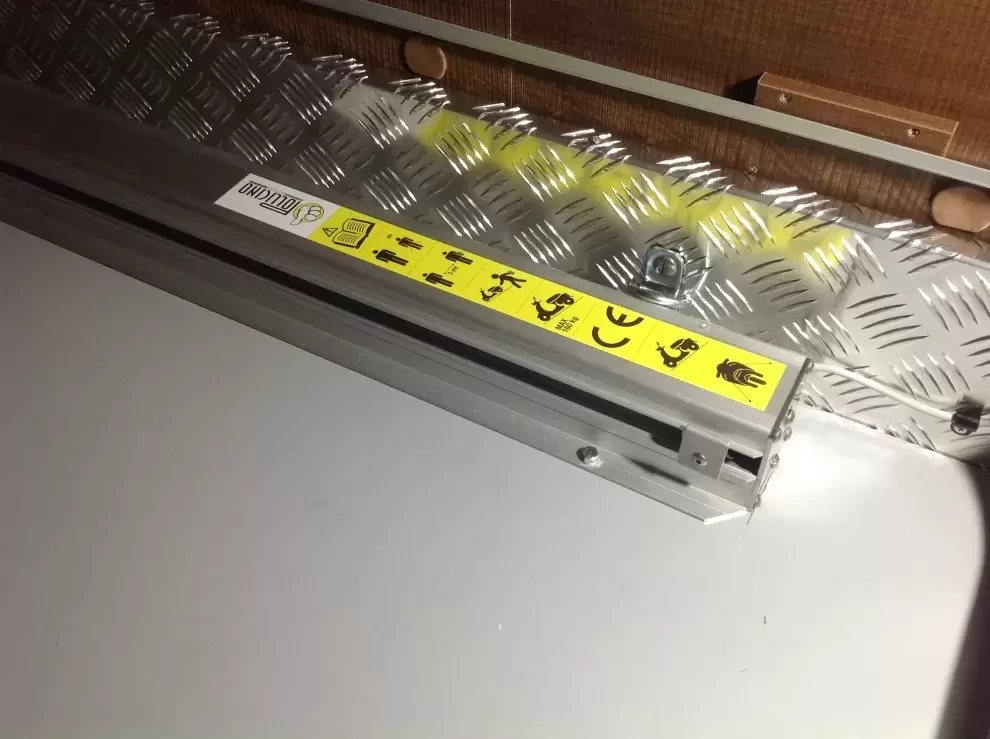 Quando não levarmos a mota teremos apenas que retirar o carro fixado com alguns parafusos e teremos a garagem completamente livre, apenas a calha é instalada de um lado e o motor de um lado.