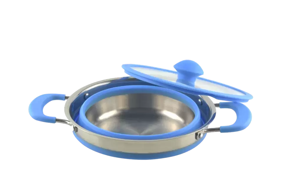 Pote dobrável VIAMONDO de 1,8 litros em silicone e aço inoxidável camping caravaning 4x4 overland.