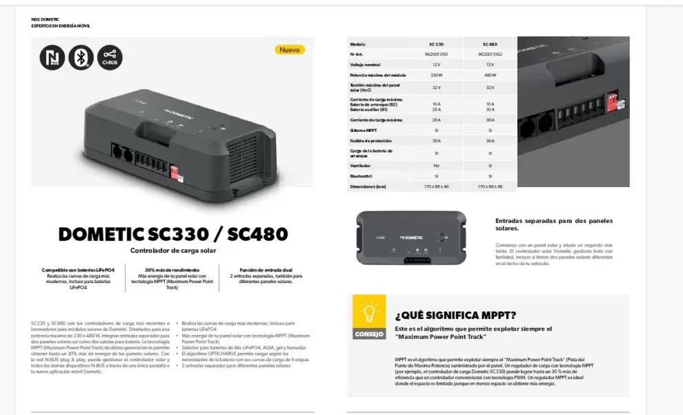 Regulador solar DOMETIC NDS SC480 MPPT para autocaravanas e autocaravanas.