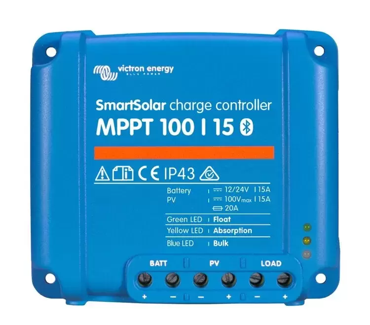 O controlador de carga Victron Energy Smartsolar 100/15 é um controlador de carga solar MPPT