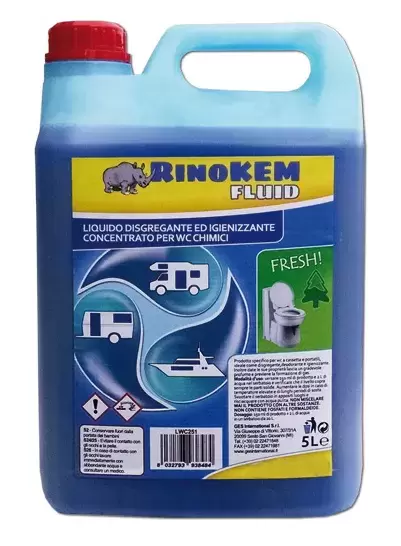 RinoKEM líquido é o perfumista concentrado específico para cassetes e sanitários portáteis com alto poder desinfetante