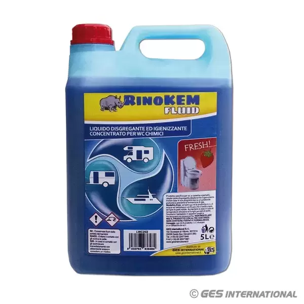 RinoKEM líquido é o perfumista concentrado específico para cassetes e sanitários portáteis com alto poder desinfetante
