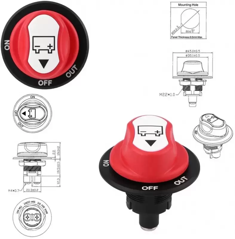 A chave seletora de desconexão da bateria é feita de ABS forte e material metálico, forte, não envelhece facilmente e é resistente à abrasão, para garantir resistência e durabilidade máximas para uso duradouro.