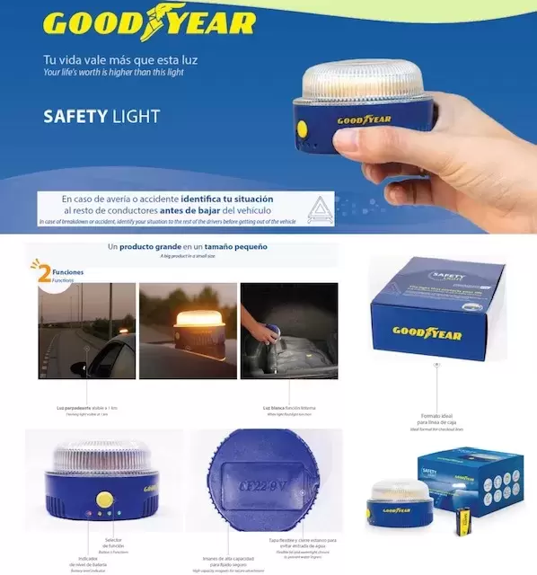 Luz de sinalização de emergência GoodYear V16 para caravanas, autocaravanas, autocaravanas e 4x4 terrestres.