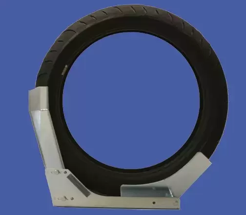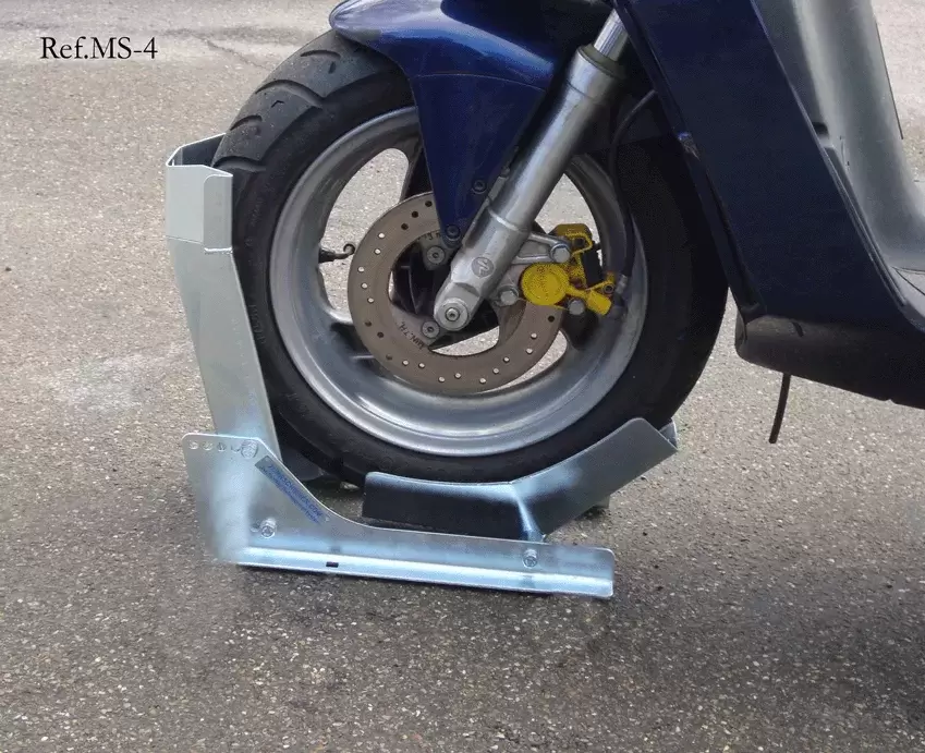 Suporte ideal para montagem dentro da garagem ou carreta, com sistema basculante que prende a roda em um único movimento, mantendo a motocicleta presa na posição vertical, podendo soltá-la para colocar confortavelmente as cintas de fixação.