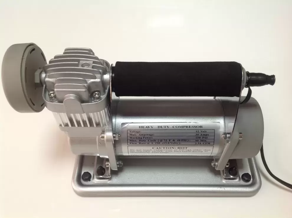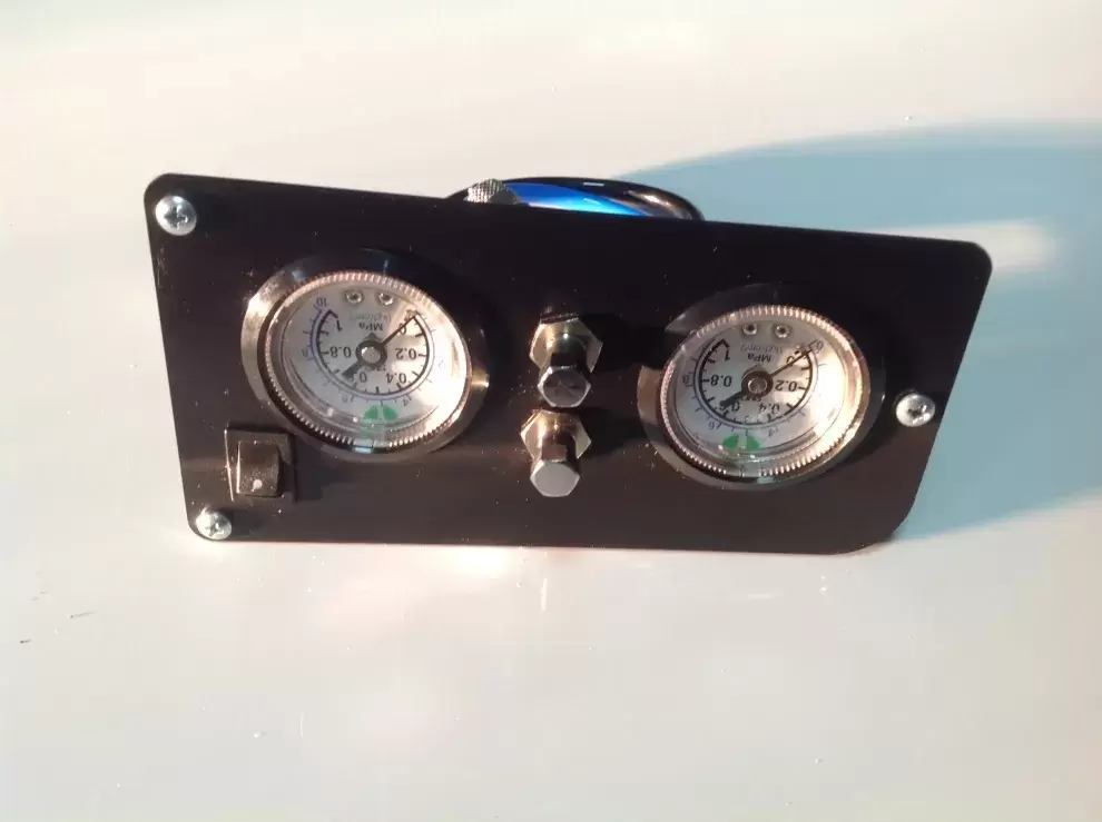 Painel de controle composto por um botão para ligar o compressor, dois manômetros analógicos para exibir cada pressão, este sistema permite ajudar a nivelar o motorhome ou trailer em um estacionamento, tendo mais pressão em um cilindro do que em outro, uma vez que seguimos nossa marcha não é necessário esvaziar o outro balão e colocar pressão novamente, seu sistema de válvula nivela ambos com a mesma pressão.