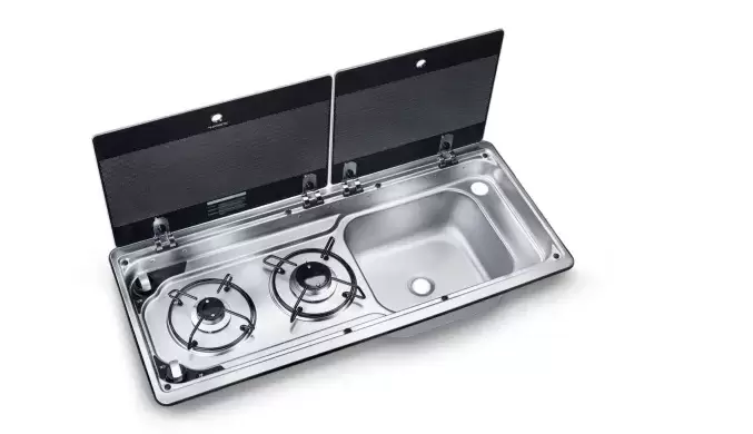 Cobertura de vidro esquerda de substituição para cozinha/pia Dometic em caravanas, autocaravanas e autocaravanas.