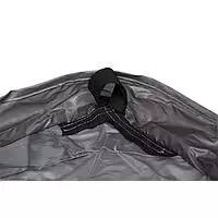 Equipado com abas laterais e pontos de tensão nos cantos inferiores.
