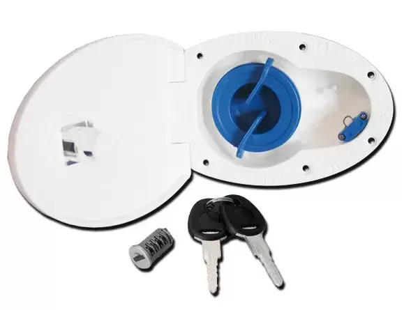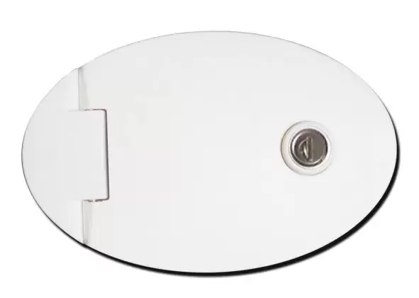 Tomada de água exterior com tampa e forma oval completa com cilindro e chaves.