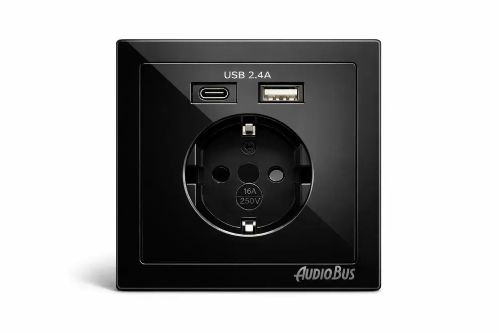 Tomada Shuko com 2 conectores USB, ideal para caravanas, autocaravanas e autocaravanas.