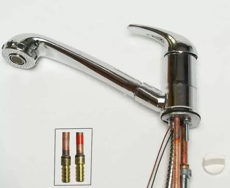 construção leve. Bocal giratório com chuveiro removível. Microswitch 12V / 6 A. Com conexões de tubo de 15 cm. Furo 33mm. Produto de série em cromado DETHLEFFS