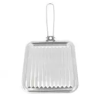 Com esta simples torradeira pode torrar 2 tostas ao mesmo tempo no seu fogão a gás, também se dobra, ocupando menos espaço que um prato, ideal para caravanas e autocaravanas, funciona muito bem.